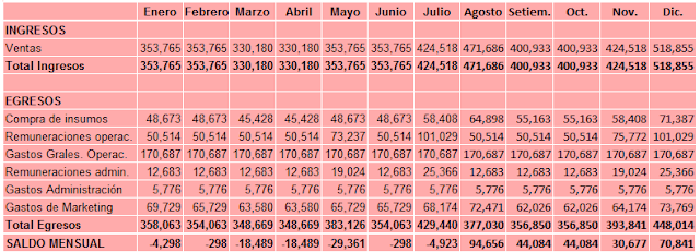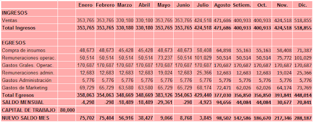 Um detalhe importante a considerar, e talvez você tenha pensado, é que o S / .80,000 será mantido em uma caixa por 7 meses; e pode não ser conveniente por causa do custo financeiro (juros) que implicaria tê-los. Portanto, dependendo de cada caso particular, esta quantidade pode ser injectado para o negócio em duas partes (por exemplo S /. 24,000 para os primeiros três meses e depois S /. 56000 para as restantes cinco meses), ou em três ou mais .