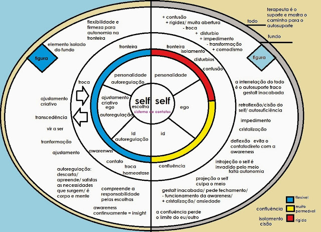 SELF é o sistema de contatos em qualquer momento no campo organismo meio. É o sistema complexo de contatos necessários ao ajustamento no campo imbricado. É o processo de figura-fundo em situações de contato. Seu ser no mundo – variável conforme as situações.
