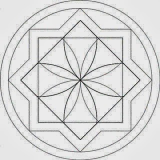 O princípio básico é o centro a partir do qual tudo se desenrola de uma forma ordenada e circular. Logo, basta desenhar um quadrado, sinalizar o centro e desenhar uma circunferência. A partir deste momento tudo o que colocar dentro do limite do círculo deve estar relacionado com o centro e serve, em última análise para desviar o olhar para o mesmo ou a partir dele.