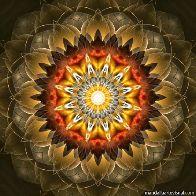 Bem. também é simples. Sabendo que tudo o que se enxerga na luz torna-se colorido, pode-se afirmar também que tudo que vê-se com a LUZ INTERIOR DO ESPÍRITO torna nosso interior (antes sombra e escuridão) em CORES e FORMAS das mais variadas. Nessa dimensão interior, onde a LUZ INTERIOR DO ESPÍRITO nos mostra mais da gente mesmo, vê-se um círculo de novas idéias se formando. O círculo. Eis a ligação com a Mandala. O círculo interior, nosso Self à mostra, pode então ser representado no papel nas suas mais variadas cores e formas contempladas dentro, pela ILUMINAÇÃO DA LUZ INTERIOR DO ESPÍRITO. Para tudo que se queira enxergar claramente, detalhe por detalhe em sua composição, deve-se existir a LUZ, seja ela de uma fonte externa ou de uma fonte interna. A interna, nos orienta à nós mesmos, enquanto que a externa mostra ao mundo que a própria orientação interior foi possível e posta em ação na representação de cores e formas num círculo chamado MANDALA.