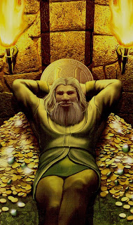 Não que ele seja um arquétipo frio, mas representa o tipo de pessoa que acaba se entretendo demais na questão do ficar rico, ganhar muito dinheiro, (essas são suas realizações pessoais mais importantes), e acaba deixando algumas coisas de lado. No mito de Midas, podemos ver, que riqueza material não é tudo, é importante sim (e como!!), mas só a riqueza não traz a verdadeira felicidade. Esse é o desafio do rei de Ouros, se permitir acumular, mas saber depois aproveitar o que acumulou.