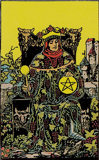Na minha opinião, o Rei de Ouros é o arquétipo do " poderoso", aquela pessoa que se dedicou à algo, e foi inteligente o suficiente para ser e ter o que ela deseja. Alguém que alcançou o verdadeiro sucesso,trabalhando muito, aproveitando oportunidades, e hoje pode desfrutar do que adquiriu, tem status e admiração.