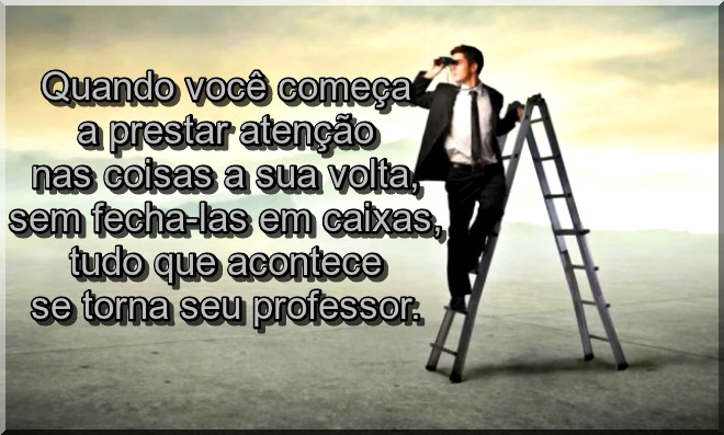 Mas quando você começa a prestar atenção nas coisas a sua volta, sem fecha-las em caixas, tudo que acontece se torna seu professor.